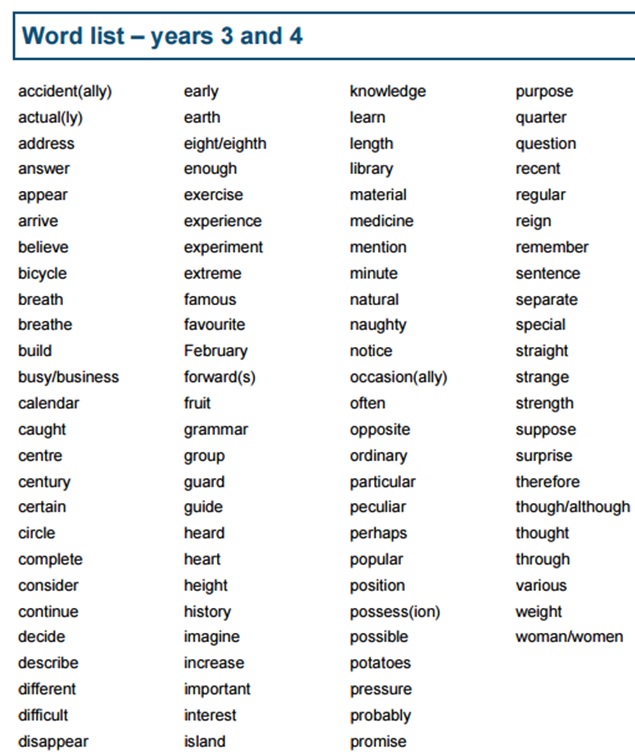 Year 3&4 Spelling Word List